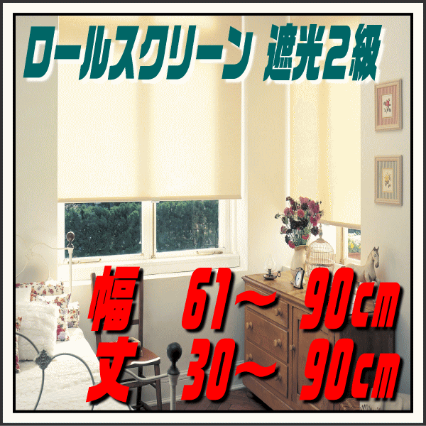 ロールスクリーン・遮光2級・幅 61? 90cm・丈 30? 90cm