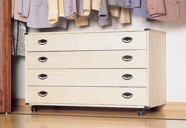 本格ろう仕上げ!湿気から衣類を守る!桐クローゼットチェスト 100cm幅4段価格: 19,000円レビュー評価: 0.0 レビュー数:0 本体、引き出しまで良質の桐材をふんだんに使い、大切な衣類をイヤな湿気から守ります。クローゼットの下や押入れでも使えます。昔ながらの本格製法のろう仕上げ!水をはじき、手垢がつきにい!!たとう紙もゆっったり入るワイドサイズ!キャスター付きで移動もラクラク!*サイズ:約)幅100×奥行44×高さ61cm、14.3kg*引き出し内寸:約)幅93×奥行39×高さ12cm*材質:本体/天然木(桐集成材)、底板・背板/天然木化粧合板(桐材)*塗装:ろう仕上げ*耐荷重:引出し5kg、天板5kg*キャスター4個(ストッパー2個) キャスターのみ取り付け*日本製■送料:全国一律840円(北海道は1050円)■※申 |