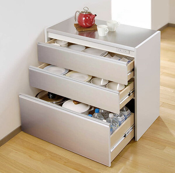 熱・水に強いステンレストップ。両面化粧仕上げで間仕切り使用もOK![国産・完成品]キッチンカウンター シルバー 90cm幅 [送料無料]価格: 35,800円レビュー評価: 5.0 レビュー数:1 カ ラ ー シルバー 全 体 サ イ ズ 幅89.0×奥行44.5×高さ85.0(cm) 材 質 天 板 ステンレス 18-0 引出し前板 MDF (中質繊維板) + ポリエステル化粧シート 側板・背面板 フラッシュ構造合板 + プリント化粧シート 引出し構造材 MDF (中質繊維板) 取っ手 アルミニウム 下段引出し底 ステンレス 18-0 サイズ詳細 上段引出し 幅79.5×奥行38.5×高さ14.5(cm) 中段引出し 幅79.5×奥行38.5×高さ15.0(cm) 下段引出し 幅79.5×奥行38.5×高さ33.0(cm) ? ? |